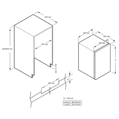 Встраиваемый мини-холодильник общим объемом 130 л имеет статическую систему охлаждения, благодаря которой продукты не засушиваются. Внутри холодильник оснащен тремя стеклянными полками и контейнером для зелени. Дверь холодильника имеет две полки и антибактериальный уплотнитель, который предотвращает рост и развитие бактерий.