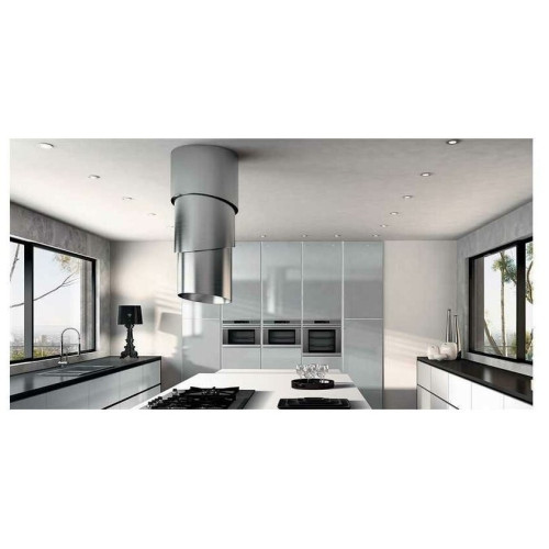 Вытяжка сделана из металла высочайшего качества! Во время работы PAREO приближается к варочной поверхности по спирали для оптимального всасывания воздуха. После использования уникальная комбинация геометрических линий и форм поднимается вверх, собираясь вокруг мотора, чтобы освободить пространство вокруг варочной поверхности. Вместе с гармоничным светом 4-х светодиодных источников, PAREO превращается в футуристическую скульптуру на Вашей кухне.