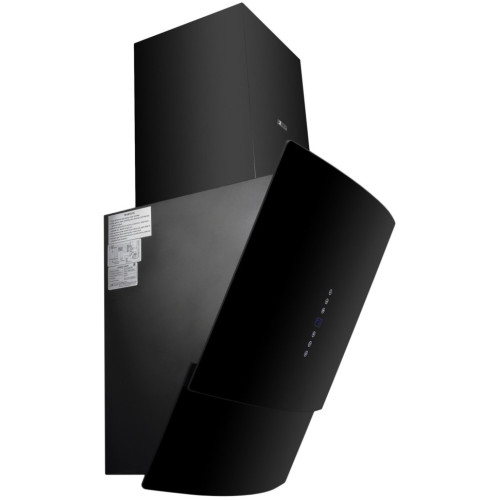 Кухонная купольная вытяжка с полукруглым чёрным стеклом и автоматическим открыванием верхней створки стекла. Имеет сенсорное управление и пульт дистанционного управления, три скорости работы и уровень шума 65 дБ.