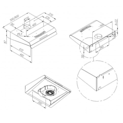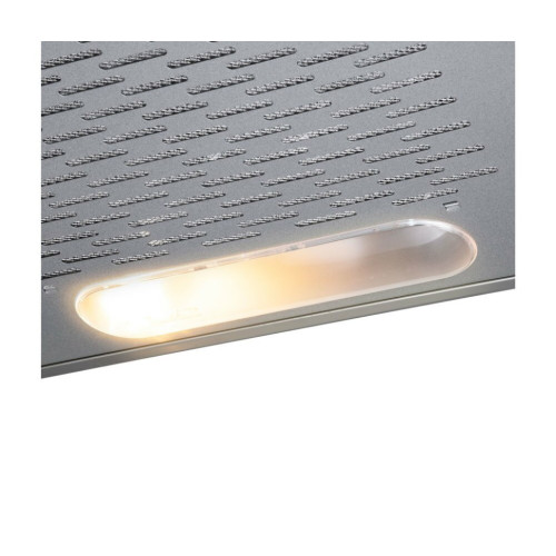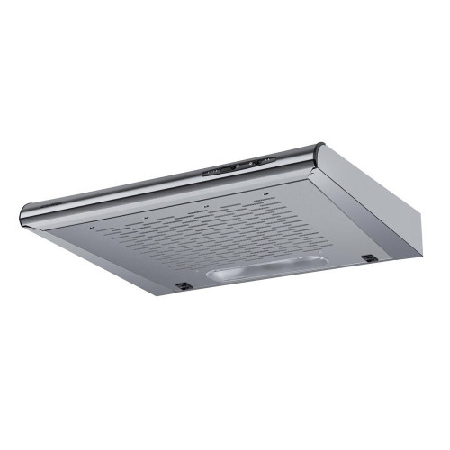 Компактная подвесная кухонная вытяжка шириной 60 см подойдет для небольшой кухни (до 12 кв. м). Может использоваться для отвода воздуха из помещения при подключении к системе домовой вентиляции или очищать воздух с помощью сменного угольного фильтра. Вытяжка сделана из матированной нержавеющей стали. За съемной декоративной панелью скрыт алюминиевый жироулавливающий фильтр, который имеет продолжительный срок службы и эффективно очищает воздух. Фильтр можно легко снять и помыть. Управление работой с помощью ползункового переключателя. Наличие 3-х скоростей позволит подобрать оптимальный вариант для использования. Мощное освещение с помощью галогеновой лампы на 28 Вт. Мощность мотора – 118 Вт, максимальная производительность составляет 420 м 3 /ч. Уровень шума на максимальной скорости не превысит 49 дБ.