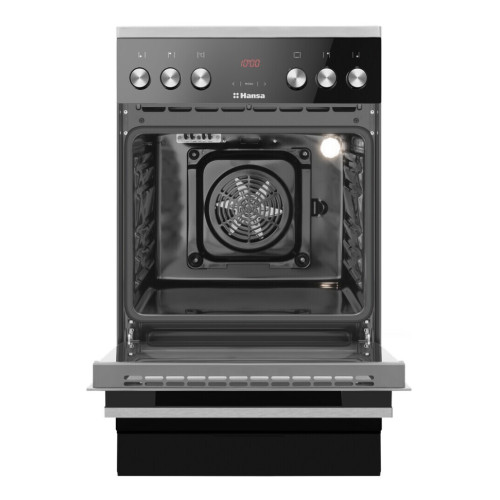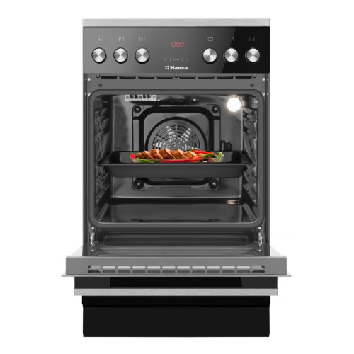 Электрическая плита Hansa FCCL59325 в черном цвете справится с любой кулинарной задачей. Варочная поверхность имеет конфорки HiLight и одно двойное поле для посуды больших размеров. Духовка с 10 программами нагрева, цифровым таймером с системой отложенного старта и автоматического отключения, конвекцией и грилем позволит готовить без ограничений. Выдвижные телескопические направляющие и противень от пригорания Procook уникальной сотовой формы сделают готовку еще комфортнее. Гарантированный кулинарный успех * Противень ProCook В любом духовом шкафу Hansa вы сможете найти от одного до трех противней уникальной сотовой формы. Эта форма обеспечивает постоянную циркуляцию воздуха под продуктом и не позволяет пригорать ему так же быстро, как это было бы на абсолютно ровном противне. Более того, эта же форма создает ребра жесткости, которые предотвращают провисание центральной части противня со временем, что может произойти с плоскими аналогами. * Конвекция Функция конвекция обеспечивает улучшенное распределение жара и постоянную циркуляцию воздуха внутри духового шкафа. Это сокращает время приготовления, а также позволяет добиться более равномерного пропекания и золотистой корочки. * 10 режимов духового шкафа Режимы: верхний и нижний нагревательный элемент + конвекция; гриль; верхний нагревательный элемент + гриль (супергриль); размораживание; нижний нагревательный элемент; быстрый нагрев; кольцевой нагревательный элемент с конвекцией + нижний нагревательный элемент; кольцевой нагревательный элемент с конвекцией; верхний нагревательный элемент + гриль + конвекция; верхний нагревательный элемент + нижний нагревательный элемент * Электрический гриль Плиты Hansa оборудованы электрическим грилем, который потребляет небольшое количество энергии, но при этом позволяет приготовить мясо или курицу с хрустящей и золотистой корочкой. Безопасность ваших близких * Индикация остаточного тепла Индикатор остаточного тепла сообщает о том, что зона нагрева все еще остается горячей, несмотря на то, что она уже выключена. Значок остаточного тепла перестанет гореть когда температура поверхности опустилась ниже 50 градусов и больше нет риска обжечься. Данная функция является одной из самых полезных с точки зрения безопасности. * Защитное отключение зон нагрева В целях безопасности каждая зона нагрева оборудована системой автоматического отключения. Максимальное время работы определяется в соответствии с выбранной мощностью нагрева. Если в течение длительного времени мощность не меняется, то соответствующая зона отключается и появляется индикация остаточного тепла. * Немецкая стеклокерамика Schott Ceran Во всех стеклокерамических варочных панелях и плитах мы используем лучшую стеклокерамику от немецкого производителя Schott Ceran. Инновационный процесс производства делает керамику SCHOTT безопасной, эффективной и надежной. * Выдвижные телескопические направляющие Если противень тяжелый и горячий, то доставая его из духовки вы рискуете уронить его или обжечься. Однако, с телескопическими направляющими в духовке Hansa этого не случится. Они поддерживают противень и все, что вам надо сделать - это выдвинуть его, легко потянув на себя. Кроме того, вы можете сами выбрать уровень, на котором вам нужны направляющие, и легко перевесить их. Комфортное использование * Ре