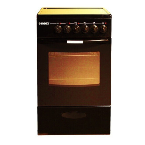 Электрическая плита REEX CSE-54 gBn имеет стеклокерамическую рабочую поверхность с 4 конфорками. В модели имеется электрическая духовка объемом 57 л. Управление прибором осуществляется поворотными переключателями.