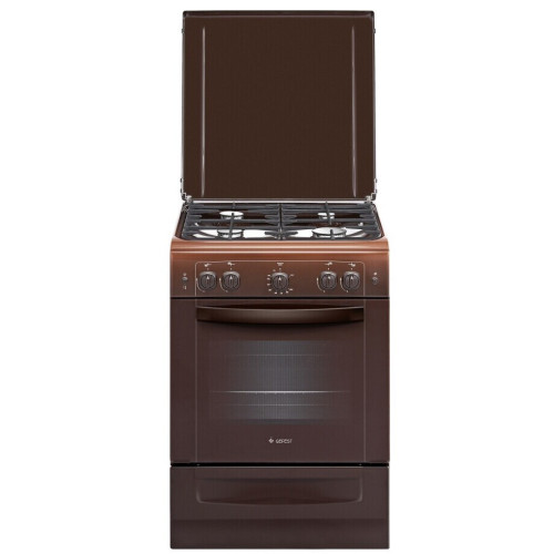 Газовая плита GEFEST – модель от бренда, отлично зарекомендовавшего себя. Компания выпускает надежную технику с хорошими характеристиками. Дизайн плиты простой, цвет изысканный кофейный. Модель обладает четырьмя конфорками. Они оснащены функцией электрического поджига. Можно забыть о применении специальных зажигалок. Функция выводится на отдельный элемент, пламя мгновенно зажигается. Духовка газовая. Камера обладает оптимальным объемом 52 литра. Внутри установлена подсветка, она позволяет наблюдать за процессом приготовления. Есть функция гриля для приготовления блюд с хрустящей корочкой. Газ-контроль исключает утечки при эксплуатации. Дверца получила два стекла. Они прочные, переносят высокие температуры, снижаются сопутствующие потери тепла. Плита может использовать в качестве горючего природный газ или сжиженный пропан-бутан. Дополнительно она подключается к сети. Модель оснащена ящиком для посуды в нижней части, в нем можно хранить различные кухонные принадлежности.