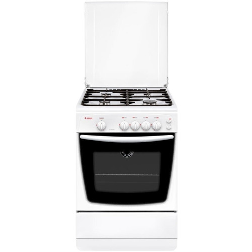 тип: газовая, тип духовки: газовая, тип варочной панели: газовая, материал рабочей поверхности: эмалированная сталь, ширина: 60 см, глубина: 60 см, количество конфорок: 4, электроподжиг: варочная поверхность, газ-контроль: духовки, особенности конструкции: подсветка духовки, ящик для посуды, очистка духовки: традиционная