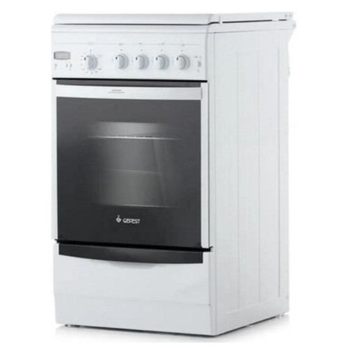 Газовая плита с обновленным дизайном и электронным таймером, ширина 50 см. Эмалированный фасад и металлическая крышка стола, все газовые горелки оснащены электроподжигом и газ-контролем, модель обладает узнаваемым фирменным обликом Gefest и полноценным функционалом современной газовой плиты. Большая, вместительная духовка с регулируемой температурой нагрева (термостат), дополнительный режим работы - гриль. Электронный таймер упрощает пользование плитой, окончание работы обозначается звуковым сигналом. Варочная поверхность, покрытая прочной эмалью, защищена чугунными решетками и крышкой. Стандартное размещение конфорок: две обычные, среднего размера дополнены одной мощной, быстрого нагрева и небольшой, экономичной. Ключевые преимущества: - Чугунные решетки 5100-03 0001 (Изделия с серийными номерами 2103хххххх укомплектованы стальными решетками стола) - Электророзжиг - Газ-контроль - Таймер электронный - Гриль - Вертел с электроприводом - Подсветка духовки - Съемные проволочные направляющие духовки - Выдвижной ящик для посуды и принадлежностей - Ножки регулировочные