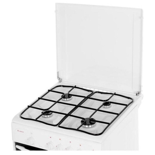 Тип: Газовая плита; Переключатели: поворотные; Рабочая поверхность: эмаль; Количество газовых конфорок: 4; Тип духовки: газовая; Дверца: откидная; Объем духовки: 65 л; Очистка духовки: традиционная; Количество стекол дверцы духовки: два; Электроподжиг: варочная поверхность; Тип электроподжига: механический; Описание: газовая плита, эмалированная рабочая поверхность, 4 конфорки, газовая духовка, ШхГхВ: 60x60x85 см, механическое управление; Особенности: электроподжиг, подсветка духовки, газ-контроль духовки, ящик для посуды; Цвет: белый; Ширина: 60 см; Высота: 85 см; Глубина: 60 см; Вес: да