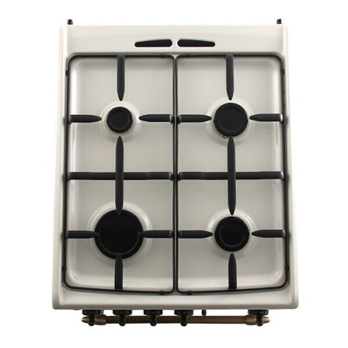 Рабочая поверхность: Материал: эмаль Количество конфорок: 4 газовые Мощность конфорок: Левая ближняя варочная зона (Тип, Мощность): Большая горелка, 3000 Вт/102 мм Вт Левая дальняя варочная зона (Тип, Мощность): Газ средней мощности, 1000Вт / 55мм Вт Правая ближняя варочная зона (Тип, Мощность): Газ большой мощности, 2000Вт / 71мм Правая дальняя варочная зона (Тип, Мощность): Средняя горелка, 2000 Вт/71 мм Электроподжиг поворотом ручки Газ-контроль Решетки: напыление