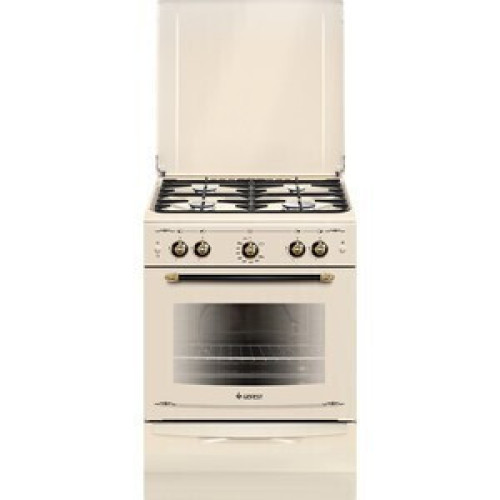 Рабочая поверхность: Рабочий стол: эмаль Количество конфорок: 4 газовые Мощность конфорок: Передняя левая: 1,75-1,8 кВт Передняя правая: 3,0 кВт Задняя левая: 1,75-1,8 кВт Задняя правая: 1,0 кВт Электророзжиг горелок стола, кнопка розжига на панели управления Чугунные решетки Духовка: Тип: газовая Полезный объем: 52 л Газ-контроль горелок духовки Электророзжиг горелок духовки, кнопка розжига на панели управления Гриль-горелка Мощность горелки духовки: 3,1 кВт Мощность гриль-горелки: 1,9 кВт Двойная подсветка Проволочные направляющие Термостат Дополнительная информация: Стиль Ретро Металлическая крышка Выдвижной ящик Регулировочные ножки Цвет бежевый, ручки черные с золотым Вес 44 кг Габариты: 85х60х60 см