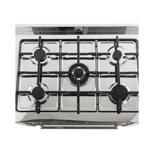 Тип плиты: отдельно стоящая Размеры (ВхШхГ): 85x90x60 см Стиль: Hi-tech Цвет: нерж. сталь Рабочая поверхность: нерж. сталь Число газовых конфорок: 5 Электроподжиг конфорок: автоматический Конфорок быстрого разогрева: 1 Газ-контроль конфорок: да Дисплей: нет Тип решеток: чугун Тип духовки: газовая Газ-контроль духовки: да Электроподжиг духовки: да Гриль: да Тип гриля: электрический Таймер: да Тип таймера: звуковой Часы: нет Термостат: нет Конвекция: нет Очиcтка духовки: традиционная Телескопические направляющие: нет Вертел в духовке: нет Подсветка духовки: да Блокировка дверцы духовки: нет Ящик для посуды: с выдвижной дверцей Максимальная температура духовки: 250 °C Количество стекол дверцы духовки: 2 Крышка поверхности: металлическая Гарантия: 1 Страна-производитель: Польша