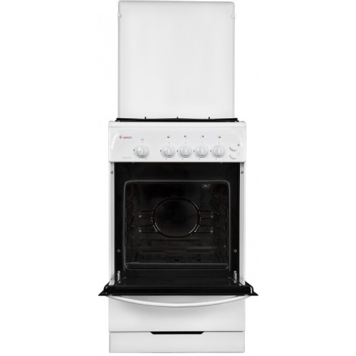 * Выдвижной ящик для посуды и принадлежностей * Стальные решетки горелок стола * Газ-контроль духовки * Термоуказатель духовки * Ножки регулировочные * Штампованные направляющие духовки * Подсветка духовки одинарная * Электророзжиг горелок, кнопка розжига на панели