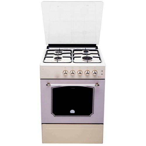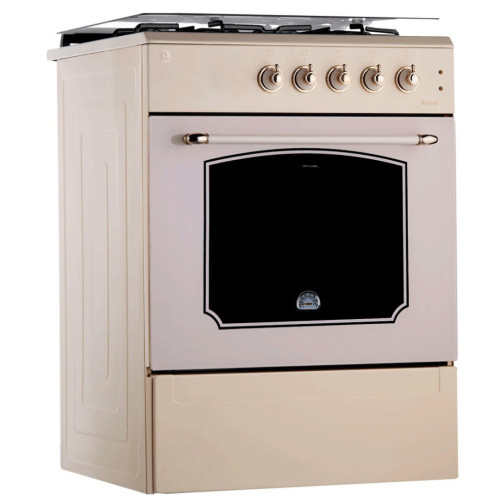 Плита имеет удобное и интуитивно понятное механическое управление, которое позволит вам с легкостью пользоваться этой газовой плитой. Наличие 4 конфорок позволит без труда готовить разнообразные блюда для всей семьи. Рабочая поверхность, на которой расположены конфорки, изготовлена из эмалированной стали, поэтому за ней так просто ухаживать. Благодаря стильному дизайну эта газовая плита идеально впишется почти в любой интерьер. Одной из важнейших функций газовой плиты является система газ-контроль духовки. Данная система автоматически прекратит подачу газа, если пламя внезапно потухнет. Надежное, съемное стекло дверцы духового шкафа. Стекло в дверце духового шкафа является съемным, благодаря чему, очень удобно очищать дверцу после пользования газовой плитой. Также, следует отметить, что стекло является каленным и может выдержать критические температуры. Функция электроподжиг конфорок способно значительно сэкономит ваше время и избавит от необходимости каждый раз при включении пользоваться спичками. * Духовка - газовая. * 2 режима духовки. * Ретро-дизайн. * Съемное стекло дверцы духового шкафа. * Электроподжиг конфорок. * Термостойкое каленое стекло. * Стеклянная крышка рабочего стола. * Подсветка духовки. * Решетка рабочего стола из надежного чугуна. * В комплекте противень - 2шт.