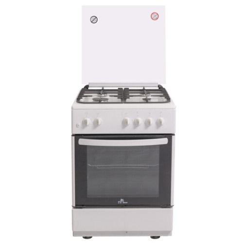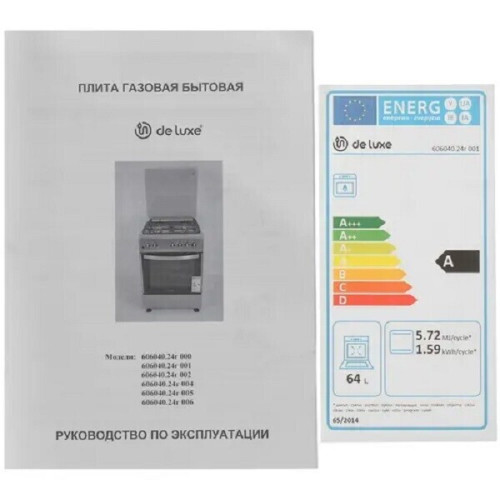 Газовая плита De Luxe 606040.24-001г представлена в белом корпусе размерами 60x85x60 см. На панели из эмалированной стали расположены четыре газовые горелки разного размера, что позволяет использовать для приготовления посуду с различным диаметром дна. От контакта поверхности горелок и панели с посудой защищают чугунные решетки. Они обладают оптимальной высотой для равномерного прогревания дна посуды и обеспечивают ее устойчивость. Для включения конфорок и управления мощностью пламени используются поворотные ручки. Для розжига конфорок можно не использовать спички, ведь они оборудованы системой автоподжига, который активируется нажатием кнопки. Плита использует для работы как природный (метан), так и сжиженный газ (пропан-бутан). Газовая духовка обладает полезным объемом 64 л, поэтому за один подход вы сможете приготовить большую порцию блюда. В нижней части корпуса находится ящик, в который можно складывать разделочные доски, посуду и столовые приборы.