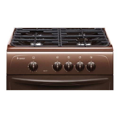 Газовая плита GEFEST оформлена в необычной темно-коричневой расцветке и украсит собой вашу кухню. Габариты представленной модели составляют 60х60х85 см. Варочная поверхность плиты сделана из эмалированной стали, что упрощает ее очистку. Модель оснащена 4 конфорками, покрытыми чугунными решетками. Управлять работой плиты можно с помощью удобных ручек с поворотным механизмом. Газовая плита GEFEST также оснащена духовкой объемом 63 л. Функция газ-контроля, имеющаяся в духовке и на рабочем столе, делает ее использование более безопасным. Двойное стекло надежно запирает жар внутри. В нижней части плиты расположен вместительный ящик для посуды.