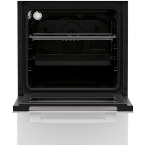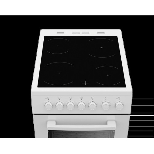 Рабочая поверхность: Рабочий стол: стеклокерамика Тип конфорок: 4 Мощность конфорок, Вт: 2х1700, 2х1200 Диаметр конфорок, мм: 2х140, 2х180 Индикатор остаточного тепла Духовой шкаф: Тип духовки: электрическая Объем: 60 л Тип гриля: электрический Дверца: откидная Очистка духовки: паровая Подсветка духовки Режимы нагрева: верхний и нижний нагрев верхний и нижний нагрев + вентилятор нижний нагрев электрический гриль малый гриль + вентилятор быстрый разогрев Управление и индикация: Тип управления: механическое Переключатели: поворотные Таймер: механический с автоотключением Термостат Дополнительная информация: Габариты: 85x50x60 см Потребляемая мощность: 8.1 кВт Класс энергоэффективности: A Ящик для посуды выдвижной В комплекте: стандартный противень, решетка духовки, шнур без евровилки