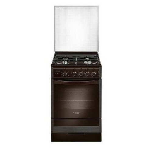 Цвет: коричневый; Часы: есть; Объем духовки: 52 л; Гриль: есть; Конвекция: нет; Газ-контроль духовки: есть; Дверца: откидная; Количество конфорок: 4;