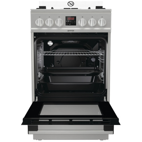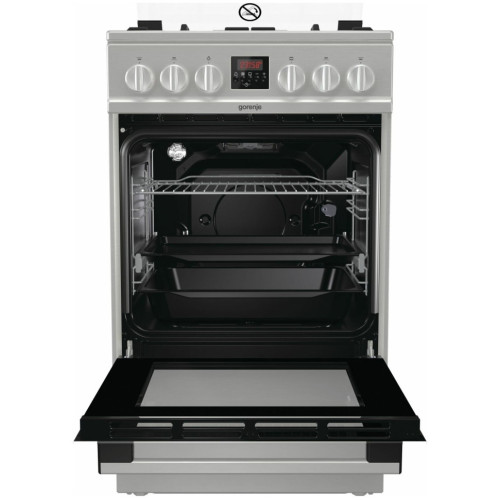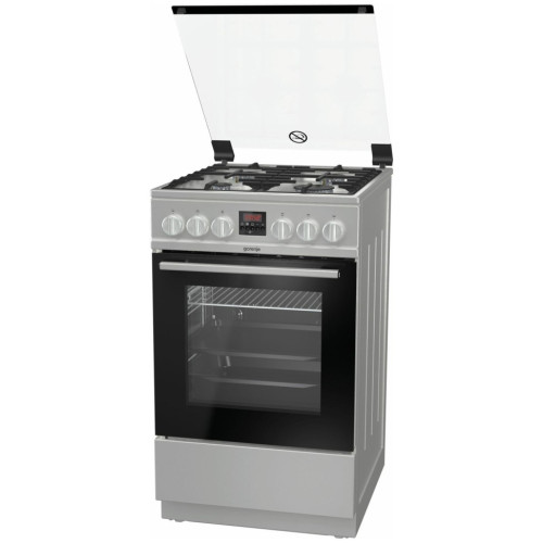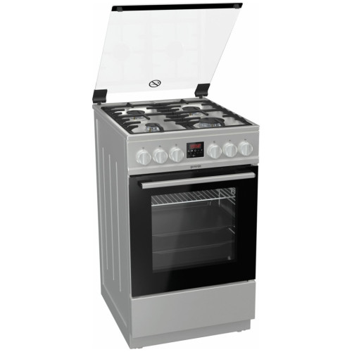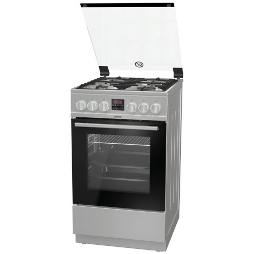 Тип: Газовая плита; Класс энергопотребления: A+; Переключатели: поворотные; Рабочая поверхность: нержавеющая сталь; Количество газовых конфорок: 4; Тип духовки: газовая; Дверца: откидная; Объем духовки: 67 л; Очистка духовки: н/д; Количество стекол дверцы духовки: два; Электроподжиг: варочная поверхность, духовой шкаф; Тип электроподжига: автоматический; Описание: Качество и тип эмали крайне важны для качества духовки и ее работы. SilverMatte — суперстойкий и высокопрочный материал, способный выдерживать очень высокую температуру и пиролитическую очистку при 500°С. Гладкой, непористой эмалью покрыты внутренние поверхности духовки и противни, что делает их устойчивыми к высокой температуре, микроволнам и пару. Тройное покрытие внутренних поверхностей отражает высокую температуру и обеспечивает дополнительную изоляцию. Активное покрытие позволяет сжигать загрязнения при высокой температуре, которая также устраняет любые микроорганизмы, и поддерживать чистоту и безопасную среду в духовке В новом поколении духовых шкафов Gorenje сводчатый потолок спрятан за передней верхней стенкой, что создает дополнительный объем и позволяет воздуху свободно циркулировать. Увеличенный объем позволяет использовать большие противни и готовить большое количество еды, при этом внешние размеры духовок остались прежними. Теперь в духовках Superior можно одновременно готовить на пяти уровнях, а не на трех, как раньше. Объем стандартных духовок составляет 75 литров и компактных духовок с функцией СВЧ — 53 литра, что причисляет их к одним из самых больших на рынке С новой конструкцией шарнира достаточно легкого прикосновения, чтобы дверца духовки плавно и тихо закрылась Особенности: гриль, подсветка духовки, ящик для посуды; Цвет: серебристый; Ширина: 50 см; Высота: 85 см; Глубина: 59.4 см; Вес: 43,2