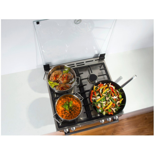 Комбинированная плита Gorenje K5241SH состоит из привычной для многих варочной панели с четырьмя горелками и электрического духового шкафа. Они являются зависимыми, поскольку имеют одну панель управления. Само устройство изготовлено из нержавеющей стали и имеет вставки из чёрного стекла. Такое сочетание придаёт достаточно современный вид, который позволяет вписать технику в актуальные стили интерьера. Дверца CompactDoor состоит из двух стёкол, между которыми проложен теплоотражающий слой. Это позволяет держать фронт прохладным и защитить вас от ожогов.