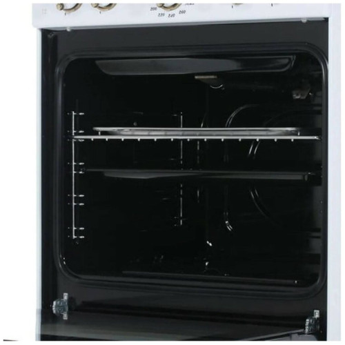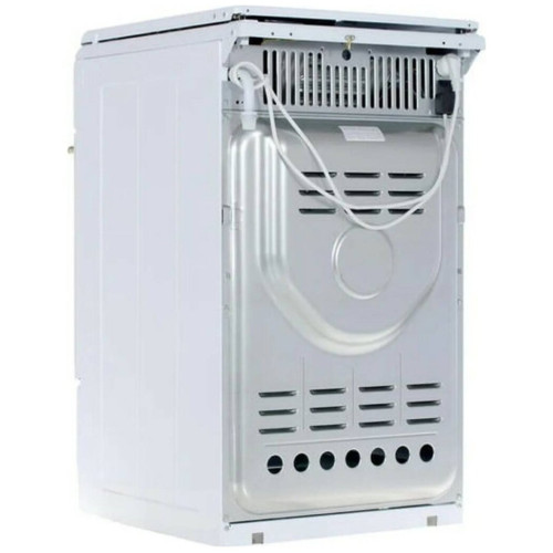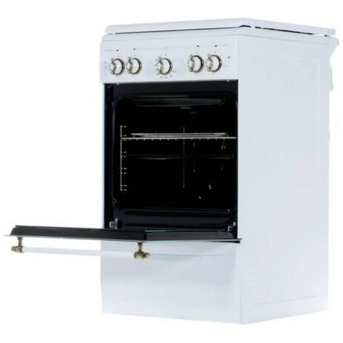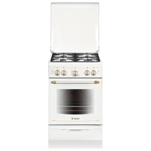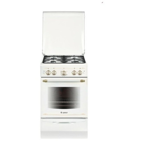 Наличие крышки: металлическая крышка. - Основные характеристики - Управление: механическое. Материал рабочей поверхности: эмалированная сталь. - Конфорки - Количество газовых конфорок: 4. Электроподжиг: ручной (пьезо). - Духовка - Тип духовки: газовая. Объем духовки: 52 л. Гриль: газовый. Газ-контроль духовки: ДА. Очистка духовки: традиционная. Количество ламп подсветки: 1. - Особенности - Ящик для хранения посуды: ДА. Особенности: Съемные проволочные направляющие духовки. Терморегулятор (термостат). Электророзжиг горелок, кнопка розжига на панели. Электророзжиг духовки, кнопка розжига на панели - Корпус - Размеры: 85x50x58.5см. Цвет: белый. Вес: 41.3 кг.