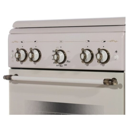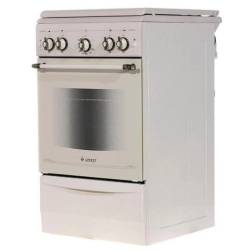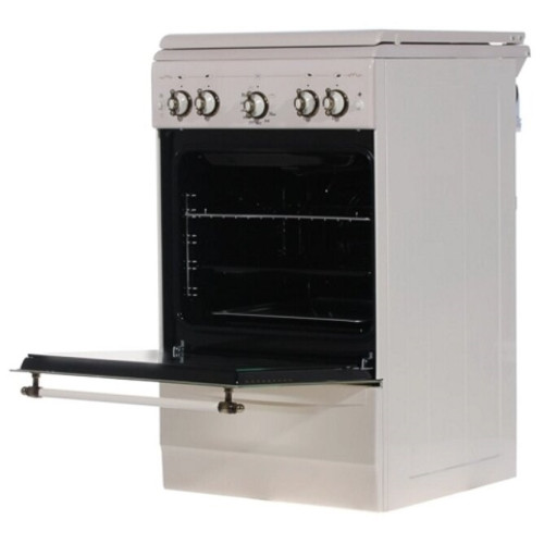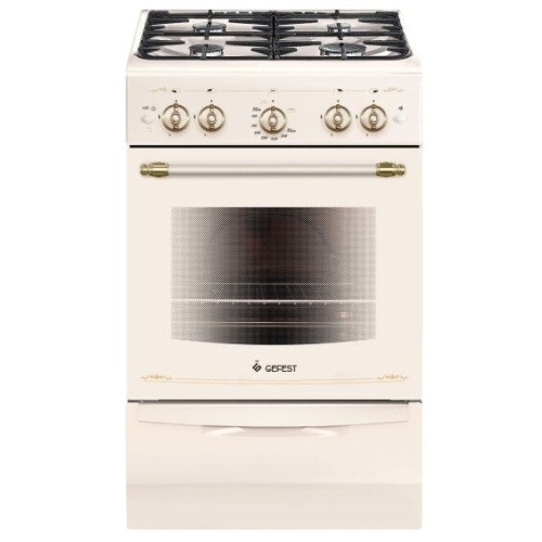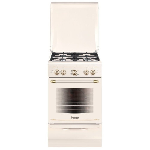 С рисунком «ретро» газовая плита, шириной 50 см. Элегантная, с необычным дизайном, но с полноценным функционалом, все газовые горелки оснащены электроподжигом. Комплектация дополнена металлической крышкой и выдвижным ящиком для хранения противней и посуды. На эмалированном рабочем столе расположены четыре конфорки (две стандартные, экономичная и мощная, с быстрым нагревом), защищенные составными чугунными решетками. Духовой шкаф - с термостатированным нагревом, нижняя горелка с газ-контролем. Для быстрого запекания можно включить гриль. Для удобного использования и ухода, направляющие для противней выполнены съемными. Ключевые преимущества: - Чугунные решетки (Изделия с серийными номерами 2103хххххх укомплектованы стальными решетками стола) - Электророзжиг горелок стола - Электророзжиг духовки - Газ-контроль духовки - Гриль - Терморегулятор (термостат) - Съемные проволочные направляющие духовки - Подсветка духовки - Выдвижной ящик для посуды и принадлежностей - Ножки регулировочные