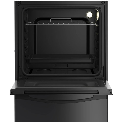 Элегантная электрическая плита FCS47007A цвета антрацит со стеклокерамической варочной поверхностью и 3 конфорками диаметром 14 и 18 см. Духовой шкаф объемом 54 л предлагает 3 режима работы и удобный выбор температуры. Дверца духовки имеет двойное стекло и полностью стеклянную внутреннюю поверхность для удобной очистки. Внизу плиты расположен вместительный ящик с откидной крышкой для хранения посуды. Внутренняя поверхность покрыта фирменной эмалью, которая не дает жиру приклеиться к стеклу и значительно упрощает уход за духовым шкафом. Поверхность электрической плиты выполнена из высококачественной стеклокерамики, которую легко привести в порядок после использования. Благодаря ширине и глубине в 50 см плита Beko идеально встанет на небольшой кухне. Под плитой находится ящик, в котором удобно хранить посуду и противни.