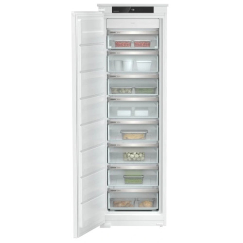 Встраиваемая морозильная камера Liebherr SIFNse 5128 - это высококачественное устройство принадлежащее к классу Comfort/Premium. При этом он обеспечивает большой объем хранения продуктов - до 209 литров. Управление морозильной камерой осуществляется через электронную систему с сенсорными элементами, расположенными над дверью. Также присутствует функция SmartDevice-Box, которая позволяет управлять работой устройства с помощью мобильного приложения. Индикаторы на панели управления показывают режим работы морозильника, температуру в камере и другую важную информацию. Морозильная камера оснащена системой NoFrost, которая предотвращает образование инея внутри камеры, что облегчает уход за устройством и увеличивает его эффективность. Внутри камеры расположено восемь ящиков из пластмассы на встроенных направляющих, что обеспечивает удобство использования. Кроме того, благодаря системе VarioSpace, вы можете настраивать внутреннее пространство морозильника в соответствии с вашими потребностями. Эта модель также оснащена различными режимами работы, включая EnergySaver для экономии энергии, PartyMode для быстрого замораживания большого количества продуктов и SabbathMode, который позволяет использовать морозильник во время субботы без нарушения правил Шаббата. Встроенный BottleTimer поможет охладить бутылку до нужной температуры в кратчайшие сроки. Морозильная камера Liebherr SIFNse 5128 обеспечивает высокую производительность замораживания (до 18 кг продуктов в сутки) и низкое энергопотребление (307 кВт/ч в год). При этом уровень шума не превышает 35 дБ, что делает ее идеальной для использования в жилых помещениях. Кроме того, устройство способно сохранять холод в течение 14 часов в случае отключения электроэнергии. Морозильник Liebherr SIFNse 5128 обеспечивает безопасность использования благодаря звуковому индикатору открытой двери и системе скользящего крепления двери. Двери морозильника можно перевешивать, что позволяет установить устройство в любом удобном месте на кухне. Кроме того, есть регулируемые ножки для устойчивости устройства. Ключевые преимущества: Высокая производительность и низкое энергопотребление Система NoFrost Настройка внутреннего пространства благодаря VarioSpace