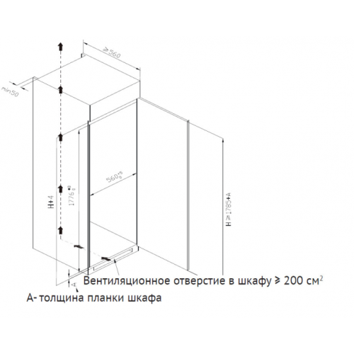 Высота для встраивания (см) 176,6