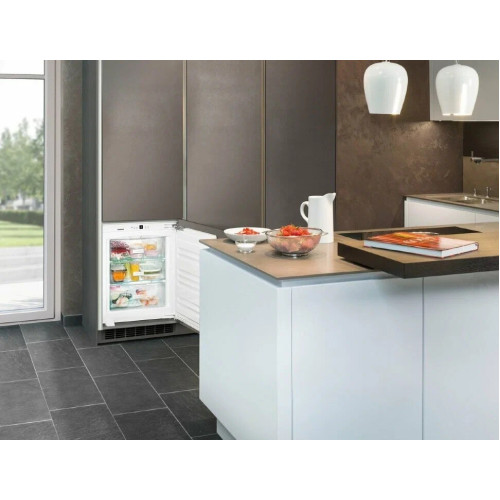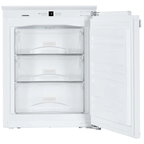 Встраиваемый морозильник Liebherr IG 1024 Морозильник класса Comfort Общие данные: Размеры: высота: 71.2 см ширина: 55.9 см глубина: 54.4 см Общий объем: 76 л Полезный объем: 73 л Тип управления: электронный Класс энергопотребления: A++ Климатический класс: SN-T (от +10°С до +43°С) Годовое потребление энергии: 131 кВтч/год Цвет: белый Морозильное отделение: Ручное размораживание Система SmartFrost Время сохранения холода при отключении электроэнергии: 23 ч Мощность замораживания: 11 кг/сутки Суперзаморозка SuperFrost Контейнеры FrostSafe: Полностью прозрачные Количество контейнеров: 3 Система VarioSpace Материал полок: закаленное стекло Лоток для кубиков льда Дополнительная информация: Система MagicEye с ЖК-дисплеем и цифровой индикацией температуры Обслуживание системы управления: кнопки Индикация температуры Сигнализация неисправности: Оптическая и акустическая Сигнализация неплотно закрытой двери: акустическая Контрольные индикаторы FrostControl Ножки, регулируемые по высоте: 2 Угол открывания двери: 115° Сторона открывания двери: правая, перенавешиваемая Уровень шума: 35 дБ Способ крепления двери: door-on-door (жесткое крепление) Вентиляция в мебели