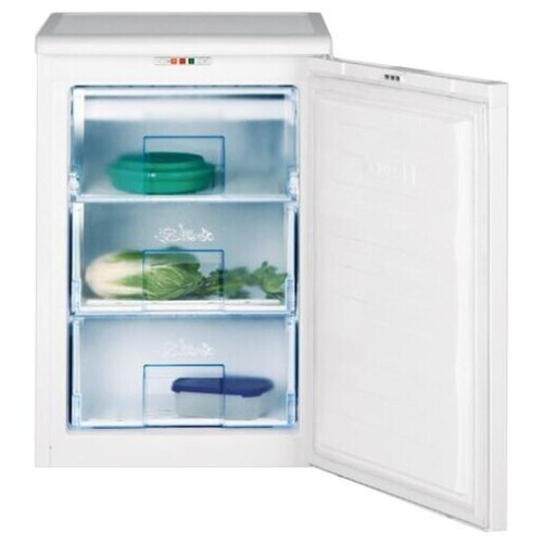 Морозильную камеру BEKO FNE 1072 объёмом 90 л удобна для заморозки продуктов в домашних условиях. Эта модель получила сдержанный дизайн в классическом белом цвете, благодаря чему будет неплохо сочетаться с большинством интерьеров. Размеры морозильной камеры – 84 х 55 х 54 см. При необходимости для большего комфорта можно перевесить дверцы на другую сторону. BEKO FNE 1072 относится к классу энергопотребления А+. Полезный объём морозильной камеры составляет 75 л. В устройстве используется механический тип управления. Хладагент R600a обеспечивает эффективную заморозку продуктов питания, сохраняя их свежесть и полезные свойства. В этом устройстве BEKO используется система авторазморозки No Frost. Она предполагает самостоятельное размораживание образованного инея, без участия человека. Это помогает сэкономить драгоценное время и силы.