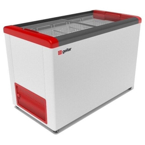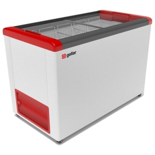 Морозильный ларь Gellar FG 400 C красный - надежный морозильный ларь для любого магазина или нестационарной торговой точки. Подходит для продажи большинства замороженных продуктов. Дополнительное уплотнение крышки и увеличенная толщина теплоизоляции в 65 мм обеспечивают сохранение температурного режима на заданном уровне. Дополнительная светодиодная подсветка внутренней части (опции). Особенности Класс энергоэкономичности ларя – А Устойчивость к перепадам напряжения Прочная, надежная конструкция из оцинкованной стали гарантирует долговечность и презентабельный внешний вид Стандарт качества ISO9001 Характеристики Максимальная температура окружающей среды, °C: до +30* Хладагент: R 134 a Испаритель: SKIN-тип, алюминий Корпус: оцинкованная пластифицированная сталь/ алюминий Тип охлаждения: статика Оттайка: принудительная Толщина теплоизоляции, мм: 65 Корзины: 4 Колеса Замок ?Опции (приобретаются дополнительно) Подсветка внутренней камеры * Изменение класса оборудования на субтропический ST (до +38 °С) ?Брендирование ( Компания фростор групп заменяет стандартную линейку морозильных ларей со стеклянными створками на лари серии GELLAR. Основные отличия: • Уникальная технология верхней рамки (короны) – для ларей с прямым и изогнутым стеклом • Высокая герметичность, легкость снятия и установки стекол, съемные уплотнители • Возможность установки LED подсветки (система профилей вместе с рассеивателем интегрирована во все лари в базовой комплектации) • Элегантный инновационный дизайн • Слой теплоизоляции увеличен до 65 мм • Внутренний корпус – оцинкованная пластифицированная сталь (дополнительная опция – алюминий) • Увеличенный КПД холодильной системы • Более низкий уровень энергопотребления • Увеличенный полезный объем • В комплекте: корзины, колеса, замок