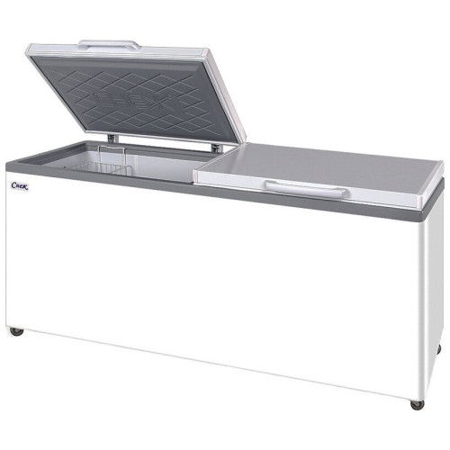 Морозильный ларь Снеж МЛК-800 серый предназначен для заморозки и длительного хранения продуктов и полуфабрикатов на предприятиях общественного питания и торговли. Ларь с глухими крышками обычно устанавливают в киосках или подсобных помещениях для хранения товарного запаса. Два отдельных отсека позволяют хранить разные по своим характеристикам продукты. Например, если в одном объеме может храниться рыба, то в другом это могут быть замороженные ягоды, грибы и т. п. Если есть необходимость, оборудование может быть оснащено одним или двумя (на оба отсека) механическими замками, позволяющими исключить несанкционированный доступ к товару. Ларь очень удобен в условиях ограниченного пространства, когда требуется сохранить достаточно большое количество продуктов. Оптимальные размеры этого ларя сделали эту модель самой востребованной как на предприятиях торговли и общепита, так и среди профессиональных охотников и рыболовов. Особенности Электромеханическое управление Корпус из оцинкованного металла с полимерным покрытием Пластик серого цвета В комплекте 2 корзины 6 колес Фреон R-134a Оттаивание ручное