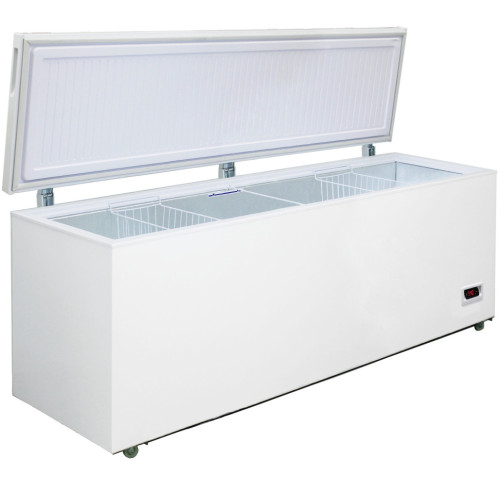 Морозильный ларь Бирюса 680FKDQ с глухой крышкой и цифровым дисплеем. Имеет две подвесные корзины. Внутренний объем камеры оставляет 600 литров. Способен замораживать до 43 кг продуктов в сутки. Размораживание проводится в ручном режиме.