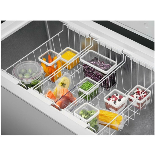 Морозильный ларь Electrolux LCB3LF38W0 с камерой объёмом 371 л – удачное решение не только для эксплуатации на предприятиях торговли и общепита, но и для использования в быту. Так, прибор незаменим для тех, кто выращивает овощи, собирает ягоды и делает множество заготовок на зиму. легко разобраться Панель управления состоит из двух кнопок и набора индикаторов. Для вашего удобства все контрольные элементы дополнены чёткими надписями и наглядными символами. индивидуальный подход Нажимайте на клавишу Set, чтобы выбрать предпочтительный режим: Min, Normal, Max или Super. Последняя настройка пригодится, если вы только что загрузили в ларь тёплые продукты и хотите побыстрее их охладить. Программа интенсивного замораживания автоматически отключается через 52 часа. минимизирует хлопоты Модель оснащена системой Low Frost с особым контуром испарения. Наледь на стенках камеры образуется очень медленно и тонким слоем, поэтому вы без проблем удалите её вручную. защитные механизмы Если условия хранения внутри устройства по какой-либо причине ухудшатся, то вас об этом незамедлительно известит отчётливый звуковой сигнал. При отсутствии электричества оптимальный микроклимат будет поддерживаться автономно на протяжении 40 часов, так что ничего не испортится. универсальность И мобильность Electrolux LCB3LF38W0 можно поставить на веранду, в подвал или в гараж – лишь бы температура там не опускалась ниже отметки -15°. Переместить прибор в другую комнату совсем не сложно благодаря наличию колёсиков. ЧТО ЕЩЁ? Бытовой помощник поставляется с тремя съёмными корзинами. Лучше разглядеть их содержимое позволяет яркая LED-подсветка, встроенная в дверцу.
