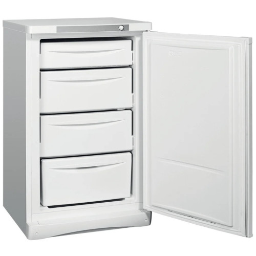 Морозильный шкаф Indesit SFR 100.001 — достаточно вместительный аппарат с общим полезным объемом морозильной камеры в 118 л. Мощность устройства для замораживания продуктов составляет 6 кг/сутки. Морозильник быстро охлаждает продукты с последующей заморозкой, тем самым готовит их к длительному хранению. Морозильный шкаф компактен. Его масса составляет 43 кг. Морозильная камера оснащена четырьмя выдвижными ящиками. Есть возможность для перевешивания двери. Морозильник весьма устойчив к сбоям электричества и перепадам напряжения. Прибор размораживается вручную, поэтому владельцу время от времени придется производить подобную процедуру. Шкаф надежно сохраняет оптимальную температуру в течении 15 часов при отключении электричества.