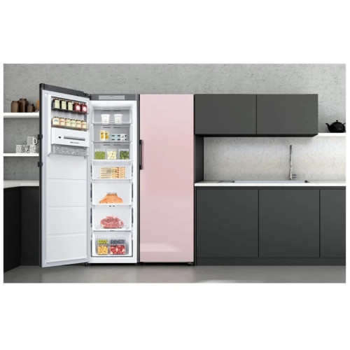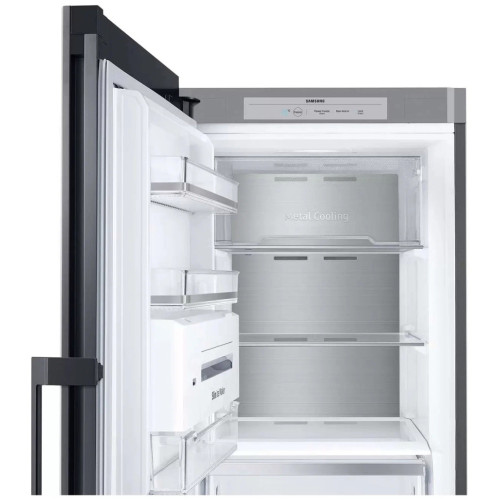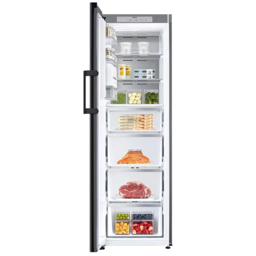 Морозильная камера Samsung RZ32T7435AP предназначена для длительного хранения продуктов.места хватитэта модель создана в соответствии с принципом Space Max, позволяющим увеличить полезный объём. Несмотря на сравнительно небольшие габариты, в вашем распоряжении – 315 л свободного пространства.персонализациясоздайте неповторимый стиль, используя сменные панели (они покупаются отдельно). Вам предлагается огромный выбор цветов, а также три материала – металл, глянцевое и матовое стекло.современные технологииинверторный компрессор работает с низким шумом и поддерживает температуру точно на заданном уровне. Металлическая панель Metal Cooling на задней стенке обеспечивает дополнительное охлаждение. За разморозку отвечает система No Frost: воздух, циркулирующий по всей камере, препятствует образованию наледи.ВСЁ под контролемэлектронная система управления позволяет легко регулировать настройки. Чтобы изменить важные параметры или задействовать функцию, которая нужна в данный момент, достаточно прикоснуться к сенсорной панели.