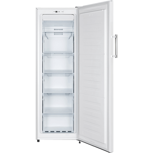 Вертикальный морозильный шкаф Hisense FV245N4AW1 оснащен белым металлическим корпусом с перевешиваемыми дверьми, пятью выдвижными и одним открывающимся лотками. Оборудование относится к классу энергопотребления A+, действуя при 262 кВтч/год. Камера на 186 л благодаря системе No Frost самостоятельно очищается от наледи, не требуя периодической разморозки. Прибор Hisense FV245N4AW1 дополнен режимом Суперзаморозки с охлаждением до -24°C. Данная модель оснащена небольшим дисплеем с температурной индикацией. Оборудование действует с мощностью 11 кг/сутки, а при отключении электричества сохраняет накопленный холод в течение 15-ти часов. Прибор весит 53 кг и обладает размерами 55x169.1x55.7 см.