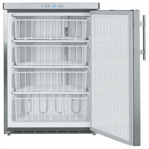 Малогабаритный морозильный шкаф Liebherr GGU 1550 со статическим охлаждением предназначен для безопасного и экономичного хранения замороженных продуктов. Энергопотребление и объем Потребление энергии за 24 часа: 0,724 кВт. ч / 24 ч Климатический класс: 5 Уровень шума: 45 дБ Полезный объем, общий: 133 л Брутто-объем, общий: 143 л Хладагент: R 600a Система охлаждения: статическая Способ размораживания: ручной Напряжение: 220-240 V ~ В Частота: 50 Гц Потребляемый ток: 0,6 A Габариты и вес Наружные размеры (В/Ш/Г): 83 / 60,0 / 61,5 см Вес (с упаковкой): 42,0 кг Вес (без упаковки): 39,0 кг Управление и функции Управление: Электронное управление Диапазон температур: от -9°C до -26°C Индикатор температуры: снаружи, в цифровом виде Сигнализация неисправности: oптическая и акустическая Дизайн и оснащение Материал боковых стенок: нержавеющая сталь Цвет: нержавеющая сталь Материал двери/крышки: нержавеющая сталь Замок: интегрирован Сторона открывания двери: правая, перенавешиваемая Материал внутреннего корпуса: полистирол для профессионального применения Полки: 4 нерегулируемые Материал полок: Пластины испарителя Допустимая нагрузка на полки: 24 кг Дизайн двери: HardLine Ручка: эргономичная ручка из нержавеющей стали Материал регулируемых ножек: оцинкованная сталь