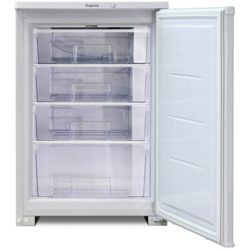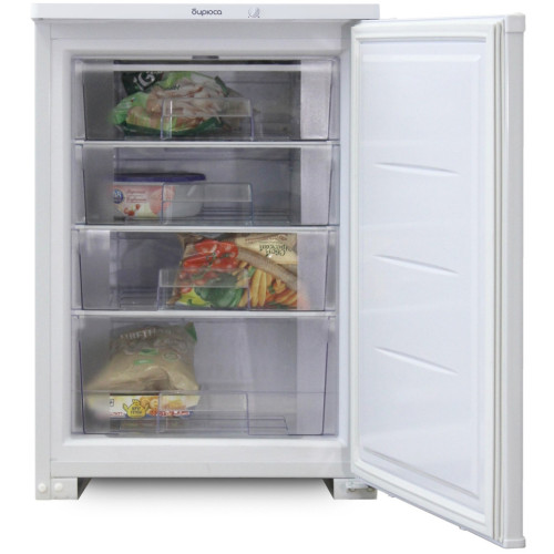 Морозильный шкаф Бирюса Б-14 предназначен для длительного хранения продуктовых запасов. Объем внутренней камеры составляет 80 л. В ней расположены 4 секции с выдвижными ящиками. Морозильник может работать в режиме суперзаморозки, который позволяет на некоторое время снизить температуру до самого низкого предела (-18 градусов) для моментального охлаждения и последующего замораживания. После этого устройство автоматически переходит в работу в установленном температурном режиме. За одни сутки морозильный шкаф может заморозить до 12 кг продуктов. Морозильный шкаф Бирюса Б-14 нуждается в регулярной ручной разморозке. Для эффективного использования пространства дверцу шкафа можно повесить на любую сторону корпуса. Морозильник работает достаточно тихо. Шумовой порог не превышает 42 дБ. Показатель энергопотребления составляет 223 кВт·ч/год. При габаритных размерах 58х62х85 см вес шкафа составляет 36 кг. Бирюса Б-14 – прибор для домашнего и промышленного использования.