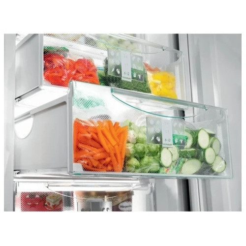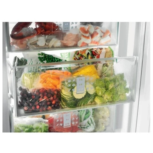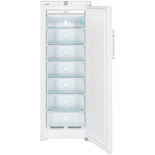 Морозильный шкаф Liebherr GNP 2756 обладает большим объемом – 221 л. В него можно поместить множество продуктов для дальнейшего хранения. Мощность замораживания высокая – 18 кг в сутки. В камере поддерживается температура -18 °С. Цвет корпуса Liebherr GNP 2756 белый. Дизайн простой и понравится покупателям. Шкаф можно использовать для различных целей. Он подойдет для торговых точек, заведений общественного питания, может применяться и дома. В данной модели реализована система No Frost. Значительно облегчается последующий уход, не придется размораживать шкаф для удаления наледи. За счет применения качественных материалов для конструкции, устройство способно поддерживать температуру еще 20 часов после отключения энергии. Для хранения продуктов предусмотрено 7 удобных ящиков. При необходимости можно легко перевешать двери, адаптировав данную модель под особенности помещения. Если створка осталась открытой, то владелец будет предупрежден с помощью звукового сигнала. Внутри установлена подсветка, она повышает удобство использования шкафа. Есть функция суперзаморозки для быстрого охлаждения. Реализована защита от детей для предотвращения их доступа внутрь.