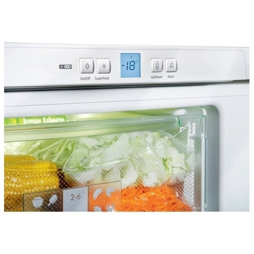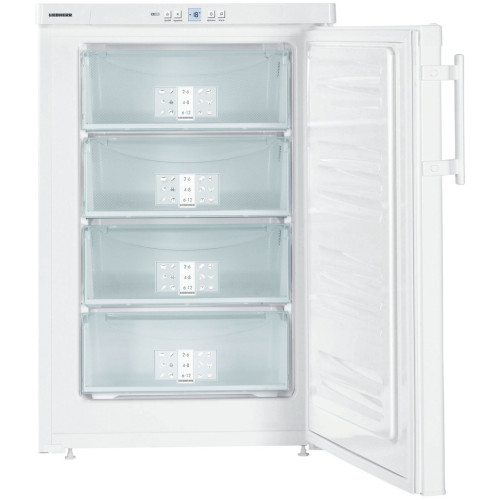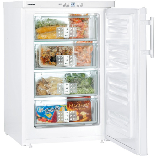 Компактный однодверный морозильный шкаф Liebherr GP 1376 оборудован электронной системой управления "MagicEye", панель которой расположена на внешней лицевой стороне прибора. Вертикальная дверь оснащена внешней удобной ручкой. Внутренний полезный объем морозилки, составляющий 103 литра, распределен между 4 выдвижными пластмассовыми ящиками с ручками для максимально удобного распределения и хранения продуктов питания. Прозрачное исполнение контейнеров обеспечивает хороший обзор продуктов, находящихся внутри. Полки изготовлены из закаленного прочного стекла. Мощность замораживания данной модели достигает 11 кг в сутки. Отдельностоящая морозильная камера Liebherr GP 1376 оборудована одним компрессором, который использует экологически безопасный хладагент R600a (изобутан). При отключении электропитания представленный шкаф способен автономно сохранять холод на протяжении 23 часов. Он предусматривает функции суперзаморозки и защиты от детей.