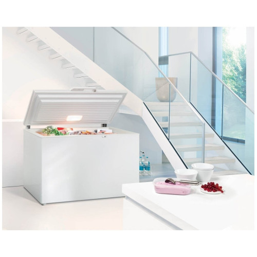 Морозильный ларь Liebherr GT 3032 – это большая морозильная камера в прекрасном внешнем исполнении. Он позволяет замораживать до 20 кг в сутки и держать отрицательную температуру в камере в условиях автономности на протяжении 37 часов. Функция Суперзаморозка позволяет быстро заморозить определенное количество продукта с сохранением максимума витаминов в нем. Внутренняя подсветка, еще одно достоинство данной модели, сделает поиск нужного Вам продукта быстрым. Минимальная внутренняя температура составляет -24 °С.