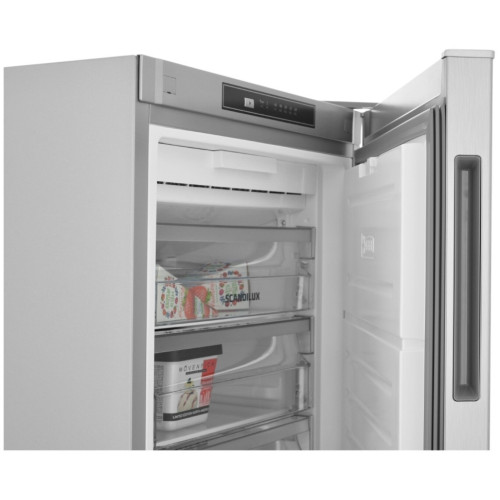 SCANDILUX - скандинавский бренд из Дании, производит бытовую технику безупречного европейского качества. Морозильник Scandilux FN210E00S обеспечит сохранность до 99 всех витаминов и полезных веществ в замороженных продуктах на многие месяцы. Система No Frost (ноу фрост) многопоточная система охлаждения для быстрой и равномерной заморозкой продуктов охлажденным воздухом предотвращает образование наледи. Возможность эксплуатации в неотапливаемых помещениях (лоджия, дача) специальная система защиты Freezer Shield способна сохранить заданный температурный режим работы при перепадах температуры до -15 С. Многофункциональное электронное управление простая в обращении светодиодная панель управления. ZERO CLEARANCE специальные петли позволяют при открытии двери уже на 90 полностью выдвигать ящики, что обеспечивает возможность установки морозильной камеры в углу кухни. 6 секций для заморозки 4 выдвижных ящика и 2 секции с откидывающимися крышками. Каждую секцию разделяет съемная закаленная стеклянная полка. Если, например, вынуть стеклянную полку между 2-й и 3-й секцией, освободится в 2 раза больше пространства для заморозки объемного продукта. Общие данные: Размеры: высота: 145,5 см ширина: 54 см глубина: 59,5 см Общий объем: 210 л Полезный объем: 175 л Тип управления: электронный Класс энергопотребления: A Климатический класс: SN-T (от 10С до 43С) Годовое потребление энергии: 254 кВтч/год Цвет: под нержавеющую сталь Inox Look Морозильное отделение: Система No Frost (Frost Free, Ноу Фрост) Время сохранения холода при отключении электроэнергии: 10 ч Мощность замораживания: 15 кг/сутки Режим Суперзаморозка 6 секций Лоток для льда Дополнительная информация: Сигнализация открытой двери Двери: перенавешиваемые