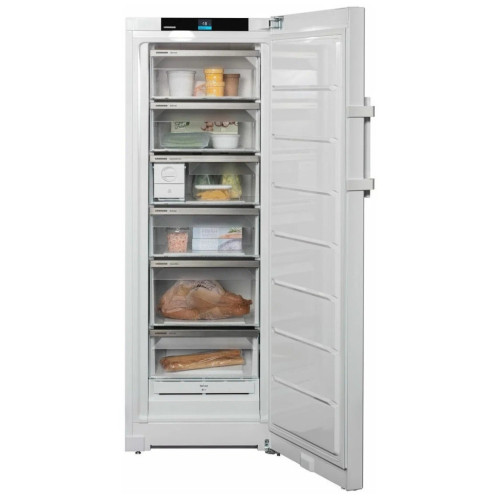 Морозильная камера с системой NoFrost Общие данные: Размеры: высота: 165,5 см ширина: 59,7 см глубина: 67,5 см * Общий объем: 279 л Полезный объем: 232 л Тип управления: электронный Класс энергопотребления: A * Климатический класс: SN-T (от 10С до 43С) Количество компрессоров: 1 Годовое потребление энергии: 201 кВтч/год * Цвет: белый Морозильное отделение: Система No Frost (Frost Free, Ноу Фрост) Диапазон температур: от -15 C до -28 C Светодиодное освещение Количество контейнеров: 6 FrostSafe: Полностью закрытые выдвижные ящики с прозрачной передней стенкой Механизмы выдвижения выдвижных ящиков: Встроенная направляющая выдвижных ящиков Выдвижной ящик с удобной функцией наклона Система VarioSpace SpaceBox Поворотный лоток для приготовления EasyTwist-Ice Число аккумуляторов холода: 2 Поднос для замораживания Дополнительная информация: 2,4 TFT-дисплей цветной, сенсорный и свайповый экран Индикатор температуры SuperFrost: Настраивается на устройстве Сигнал открытой двери морозильного отделения: Настраивается на устройстве BottleTimer: Настраивается через приложение Блокировка экрана: Настраивается на устройстве Уровень шума: 36 дБ InteriorFit EasyOpen Закрывающее устройство Сторона открывания двери: Справа для сменной двери Перевешивание двери: Возможно самостоятельно Угол открывания двери: 115 Уплотнение двери: Сменное Регулируемые по высоте ножки: 2 Транспортировочные ручки: впереди и сзади Ролики для транспортировки сзади Вентиляция через лицевую панель Тип штекера: Евро Соединительный кабель (длина): 2 100 мм * Энергетическая эффективность, заявленная производителем, может быть достигнута в случае установки ограничителей на заднюю стенку прибора. Ограничители увеличивают глубину прибора на 3,5 см (1,5 см BluPerformance). Отказ от использования ограничителей не отразится на корректной работе прибора, однако уровень потребления электроэнергии несколько увеличится.
