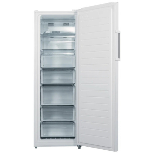 Морозильная камера Hiberg FR-31RD NFW – подходящее решение для большой семьи. Полезный объём прибора составляет 227 литров, так что найдётся место и для закупок на пару недель, и для сезонных заготовок. Для хранения продуктов устройство оснащёно семью отсеками: к вашим услугам шесть выкатных ящиков и один с откидной крышкой. Один из контейнеров увеличенного объёма. В сутки можно заморозить до 15 кг свежих продуктов. Яркая светодиодная подсветка поможет вам быстро найти всё, что нужно. У этой модели сенсорная панель управления, удобно расположенная на фасадной части. Индикаторы отображают наличие подключения к сети, внутреннюю температуру, активный режим работы, так что у вас будет полная информация о работе устройства. Прибор не требует ручного размораживания. Система No Frost исключает образование на стенках инея и наледи, так что уход за морозильной камерой не отнимет у вас много времени – достаточно лишь поддерживать чистоту. Дверца Hiberg FR-31RD NFW перенавешивается, поэтому его можно установить максимально удобным образом в помещении любой планировки.