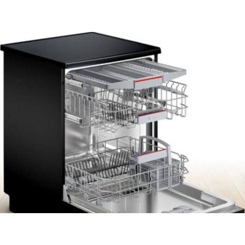 Bosch SMS46NB01B Кол-во комплектов посуды: 13 Управление: электронное Класс мытья: A Класс сушки: A Класс энергопотребления: A++ Уровень шума: 44 дБ Программы: Интенсивная 70 C°, Авто 45-65 C°, Эко 50 C°, Glass 40 C°, Быстрая 65 C°, Предварительное ополаскивание Дополнительные функции: Таймер запуска 1-24 ч Половинная загрузка HygienePlus Дополнительное полоскание Управление и индикация: Дисплей Электронный индикатор наличия соли Электронная индикация времени до окончания работы программы в минутах Цвет индикации панели: красный Безопасность: Система AquaStop обеспечивает защиту от любых протечек, как внутри прибора, так и в случае разрыва заливного шланга Защита от детей Дополнительная информация: EcoSilence Drive - высокоэффективный и очень тихий мотор Внутренние стенки прибора из нержавеющей стали AquaSensor Автоматика распознавания моющего средства Гидравлическая система ActiveWater DosageAssist BLDC Motor Tеплообменник Электроника регенерирования Самоочищающийся фильтр Потребление воды при программе Эко 50: 9.5 л Габариты: 84.5х60x60 см Бренд: Bosch Модель: SMS46NB01B