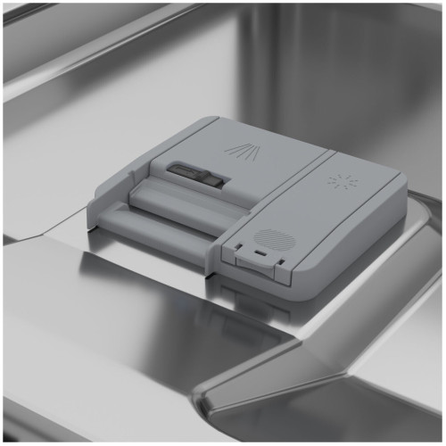 Вместительная посудомоечная машина на 15 комплектов посуды. Имеет удобное сенсорное управление. Ширина посудомоечной машины – 60 см, класс энергопотребления – А. Посудомойка работает в 5 режимах при температуре от 35°С до 70°С. Оснащена удобным световым индикатором на полу, сигнализирующем об окончании программы, а также автооткрыванием двери и защитой от протечек по корпусу. Предупреждает об отсутствии соли или ополаскивателя, а также имеет встроенную систему смягчения воды.