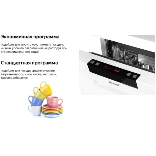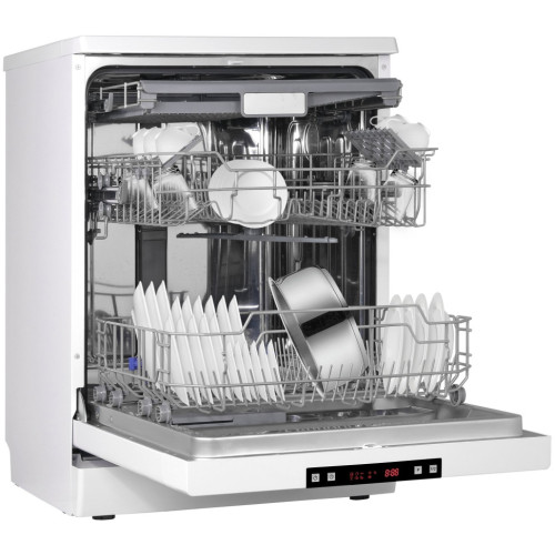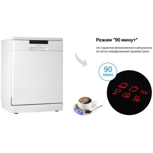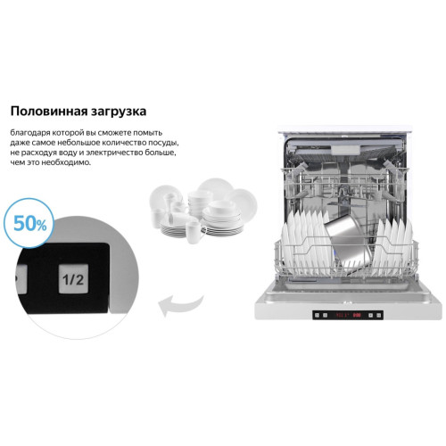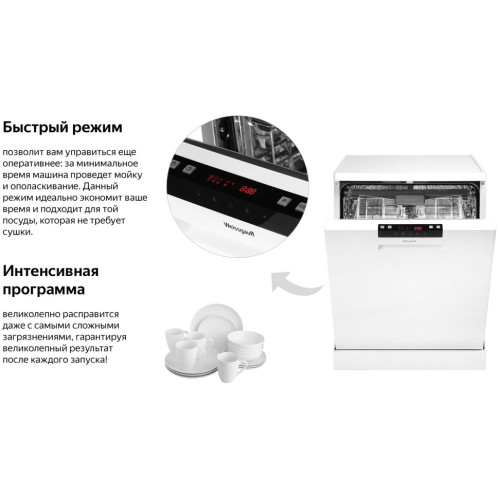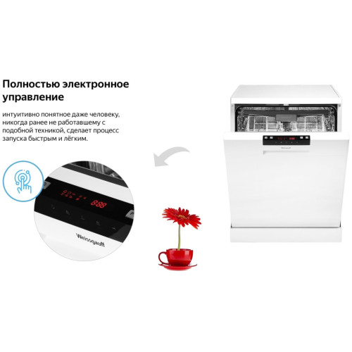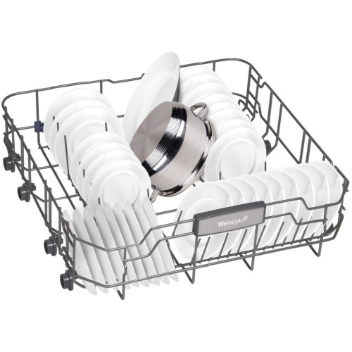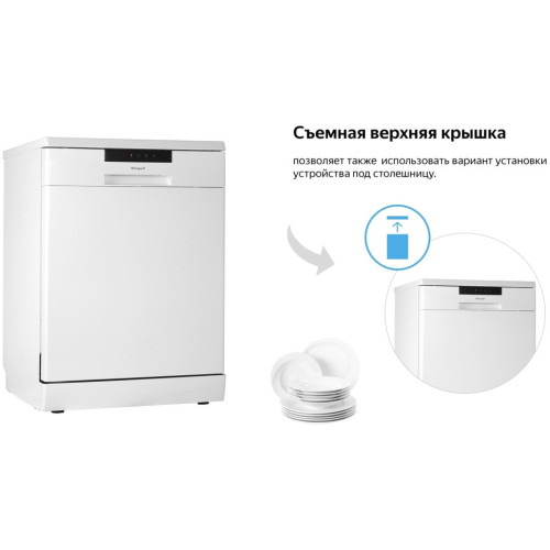 Полноразмерная посудомоечная машина WEISSGAUFF DW 6035 справится с посудой после завтрака и праздничного ужина — за один раз можно загрузить до 14 комплектов посуды. Тарелки и кастрюли располагаются в двух корзинах: а для столовых приборов предусмотрен выдвижной ящик. Если что-то забыли положить, то выручит функция дозагрузки — нажмите стоп и положите забытую тарелку. Шесть программ мойки подходят для посуды с разной степенью загрязнения: - Интенсивная отмывает жирные кастрюли и сковородки. - Экономичный режим отлично отмоет посуду и сократит расход воды и электричества. - Режим «Стекло» бережно вымоет хрупкие бокалы. Благодаря функции таймера запуск мойки можно отложить до 24 часов. Это позволяет мыть посуду ночью и меньше платить за электричество. В посудомоечной машине WEISSGAUFF DW 6035 верхняя крышка снимается, поэтому вы сможете установить машину под столешницу.