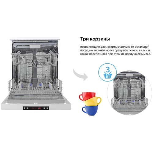 Особенности конструкции дисплей, использование средств 3 в 1, регулируемая по высоте корзина для посуды, таймер отсрочки