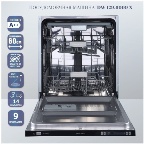 Встраиваемая посудомоечная машина Zigmund & Shtain DW 129.6009 X поддерживает девять режимов работы. В устройстве есть автоматическая программа, которая определяет количество посуды и выставляет необходимые параметры. Функция половинной загрузки позволяет очистить от жира кастрюли и сковородки, а также тарелки и столовые приборы непосредственно после еды или приготовления пищи. Конденсационная сушка обеспечивает качественное удаление лишней влаги, поэтому использовать посуду можно сразу после мытья. Защита от протечек блокирует подачу воды при поломке устройства, что снижает риск затопления.