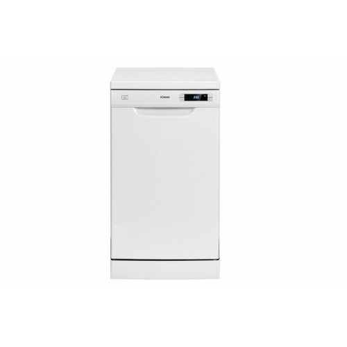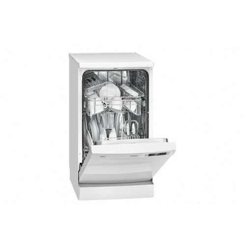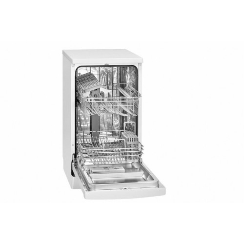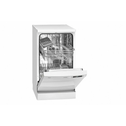 Отдельностоящая посудомоечная машина шириной 45 см, может быть встроена под столешницу Вместимость 10 комплектов посуды Система безопасности заливочного шланга «Аквастоп» Панель управления с LED-дисплеем Отсрочка старта 1-24 ч Режим загрузки 1/2 Детский замок Индикация оставшегося времени Индикатор нехватки соли/ополаскивателя Температура мойки 45°C — 70°C 2 уровня распыления воды Скрытый нагреватель воды Смягчитель воды Регулировка ополаскивателя Защита от переполнения Внутренний бак из нержавеющей стали Серебристо-серые корзины для посуды Корзина для столовых приборов / лоток для столовых приборов Регулируемая по высоте верхняя корзина Полка для чашек в верхней корзине Складной держатель для стаканов Съемная крышка ПММ Регулируемые ножки 6 программ: Мульти-табс/Ежедневная (215 минут) Интенсивная мойка (205 минут) ECO (экономичная мойка) (235 минут) 90 мин/для малозагрязненной посуды (90 минут) Стекло (120 минут) Предвариательная (15 минут) Технические характеристики: Напряжение: 220-240 В~ / 50 Гц Мощность: 1,760 — 2,100 Вт Номинальный ток: 16 A Рабочий шум: 49 дБ Габариты: 85,0 x 44,8 x 61,0 см (ВхШхД) Упаковка: 89,0 x 49,5 x 67,0 см (ВхШхД) Вес нетто: 36,9 кг Вес брутто: 40,6 кг Данные о потреблении Потребление воды/энергии за рабочий цикл: 9,0 литров / 0,755 кВтч (согласно паспорту ЕС в соответствии с Постановлением № 2019/2017)