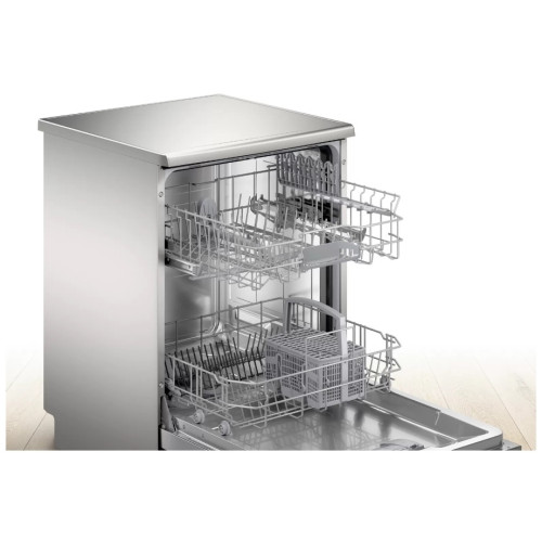 Посудомоечная машина Bosch с программой шумоподавления через приложение Home connect. Особенности: Технология Hygiene Dry позволяет сушить посуду гигиенично при закрытой двери. Это возможность избежать попадания бактерий снаружи и быть уверенными в безупречной чистоте. Тихий, эффективный и долговечный. Бесщёточный мотор нового поколения EcoSilence Drive. Система AquaStop: круглосуточная защита от любых протечек, как внутри прибора, так и в случае разрыва заливного шланга. Специальный контейнер DosageAssist предназначен для своевременного и правильного растворения таблетированных средств во время цикла мытья. Технология Home Connect с поддержкой Яндекс Алисы: дистанционное управление, диагностика и обновление программного обеспечения. Основные сведения: Габариты: 84.5х60х60 см Кол-во комплектов посуды: 12 Управление: электронное Класс мытья: A Класс сушки: A Класс энергопотребления: A Уровень шума: 48 дБ Программы: Эко 50 C, Авто 45-65 C, Интенсивная 70 C, Быстрая 65 C 1 час, Быстрая 45 Дополнительные функции: SpeedPerfect Экстра полоскание Самоочистка Таймер запуска 124 ч 1/2 загрузки Избранная программа Управление и индикация: Цифровой дисплей Home Connect: Удаленный мониторинг и контроль Wi-Fi Дистанционный пуск Индикация времени до окончания Системы безопасности: Система AquaStop обеспечивает защиту от любых протечек, как внутри прибора, так и в случае разрыва заливного шланга. В случае, если система AquaStop не сработает, компания BSH гарантирует возмещение ущерба, связанного с протечкой. Гарантия на возмещение ущерба действительна весь срок службы прибора - 10 лет. Блокировка панели управления от детей Оснащение: Стопоры на передних колесах нижней корзины предотвращают сход корзины с направляющих Колеса с низким коэффициентом трения на нижнем стеллаже и 3-м уровне загрузки Короба Vario- гибкое моделирование пространства коробов при загрузке Переставляемый по высоте верхний короб Складные направляющие для тарелок в нижнем коробе (2) Корзина для столовых приборов в нижнем коробе Дополнительная информация: Специальный отсек DosageAssist в ручке короба обеспечивает своевременное и равномерное растворение комбинированных моющих средств (таблеток и капсул) Бесщёточный мотор EcoSilenceDrive с инверторным управлением обеспечивает эффективную работу с минимальным уровнем шума и сокращает расход воды Посудомоечная машина подстраивается под тип моющего средства, обеспечивая оптимальный результат мытья Трёхкомпонентный самоочищающийся фильтр Внутренние стенки прибора из нержавеющей стали Потребление воды (л): 9,5